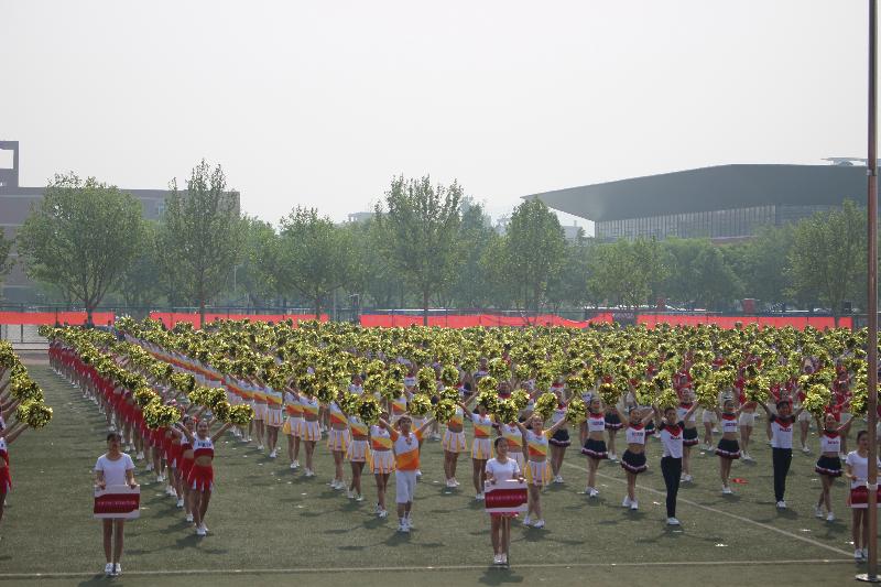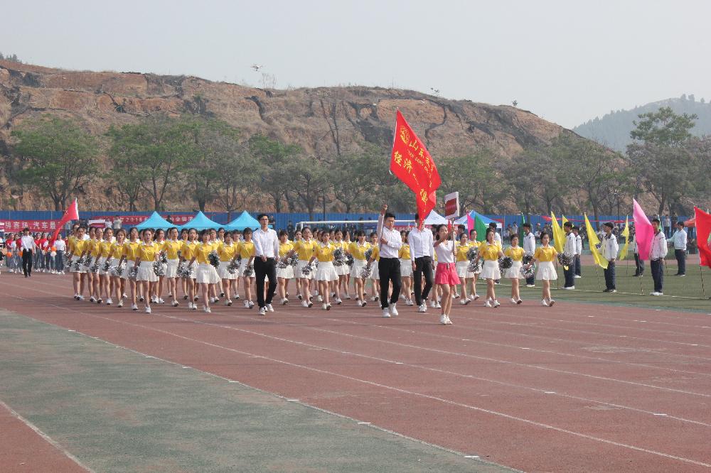 伴随着激昂的运动员进行曲,经管学院方队同学踏着矫健的步伐, 高喊激昂的口号进入会场,体现出经管学院同学特有的青春活力。随后为我们带来视觉盛宴的是各个二级学院精心准备的啦啦操比赛,在啦啦操表演中经管啦啦操表演队随歌而舞,舞出了经管人的活泼,表现出青春的激情和灵动的舞步,形成了运动会赛场上一道阳光亮丽的风景线。运动场上的表演方阵以及啦啦操以其特有的活力与魅力展示了经管学子的朝气蓬勃,也淋漓尽致的诠释了经管学子们的风采。