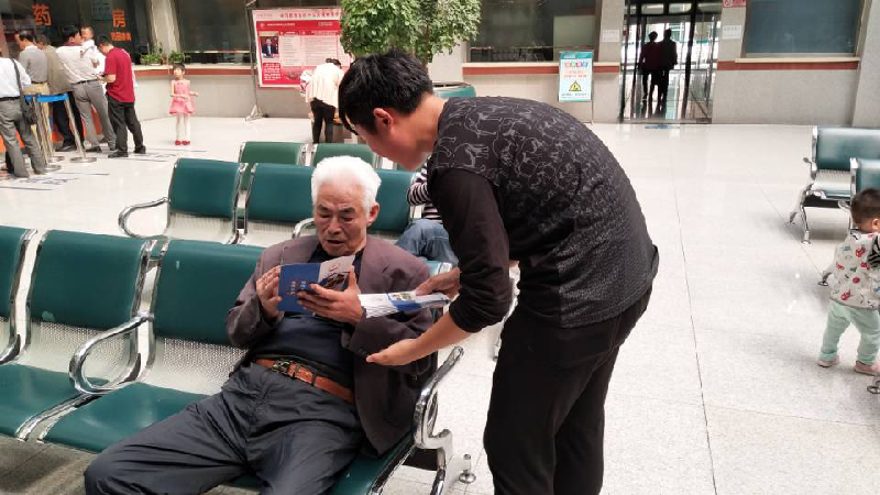 在医院工作人员的指引下,新时代先锋社社员深入医院大厅及病房,面对面向群众宣传党的十九大精神。通过向市民发放新时代先锋社宣传资料,介绍了新时代先锋社的由来,党的十九大提出的新思想、新观点、新目标以及与民生相关的战略安排,以通俗易懂的语言帮助市民领会党的十九大精神。通过新时代先锋社的宣讲,医院工作人员及市民纷纷表示,此次宣讲很接地气,对党的十九大精神有了更全面的了解和认识。