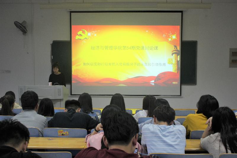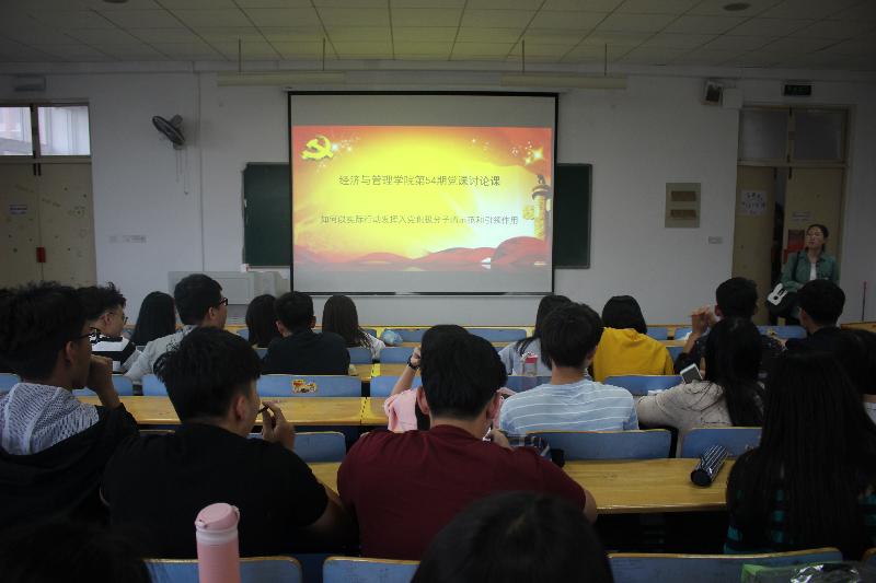 5月22日,在1号教学楼B座402教室,经济与管理学院开展以如何以实际行动发挥入党积极分子的示范和引领作用为主题的讨论课,168名入党积极分子参加了本次党课。