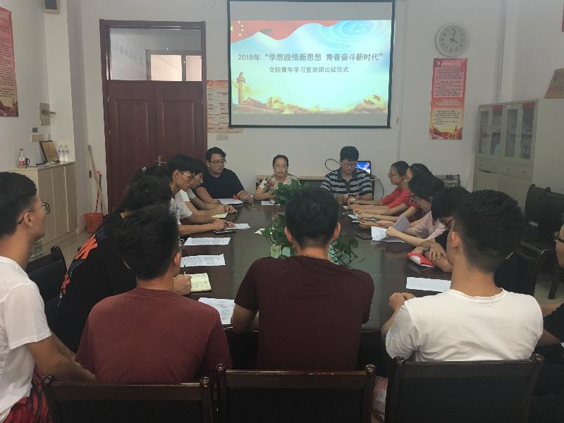 经济与管理学院2018年暑期“三下乡”社会实践出征仪式于7月19日在山东交通学院长清校区1号教学楼A座204会议室顺利进行。经济与管理学院分团委书记亓秀梅,辅导员老师刘江、闫鲁青,部分学生干部以及三下乡成员参加了此次仪式。