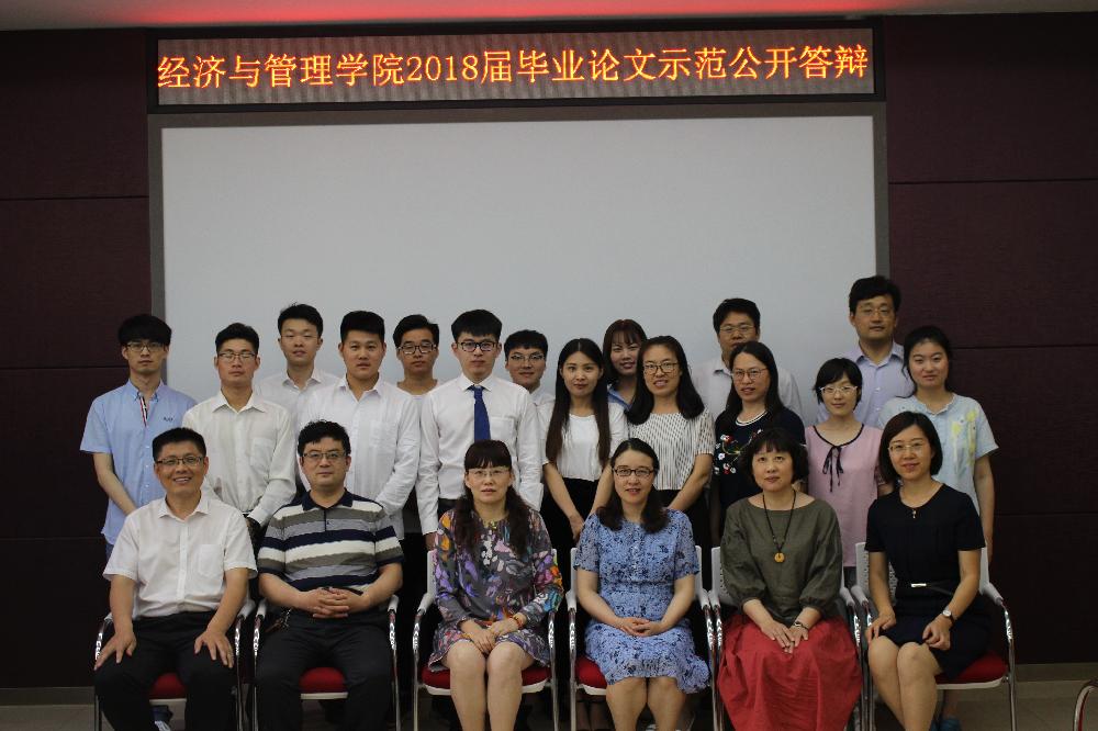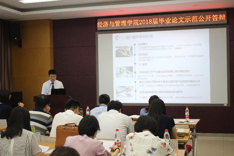 6月12日,经济与管理学院2018届毕业论文示范公开答辩在长清校区1号教学楼1B104顺利举行。院长马小南、副院长孙烨、答辩工作委员会成员及指导老师参加了示范答辩,学校督导朱爱民教授莅临现场进行指导。