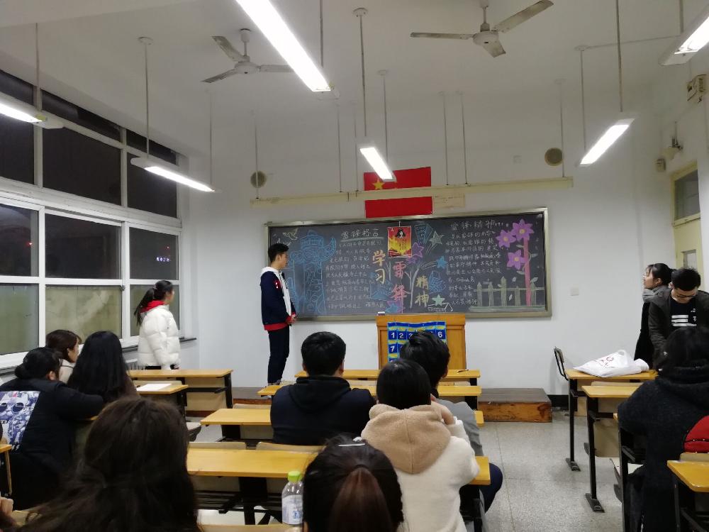 在活动开展之前各班都积极画了板报,活动中,团支书为大家介绍了雷锋生平,讲解了雷锋精神,带领同学们唱响了“学习雷锋好榜样”,同学们热情高涨。最后,团支书让同学们分享了自己身边的好人好事—雷锋精神,同学们非常积极,也更加深入的学习了解了雷锋精神。
