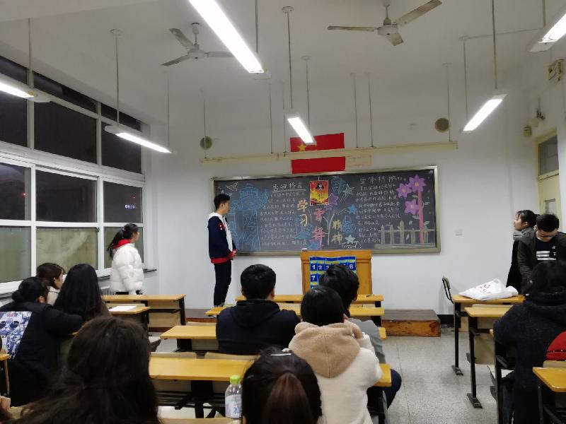2018年3月18日,我院在无影山校区一号教学楼顺利开展了以“学习雷锋好榜样”为主题的政治学习活动,17级全体同学均积极参加其中。