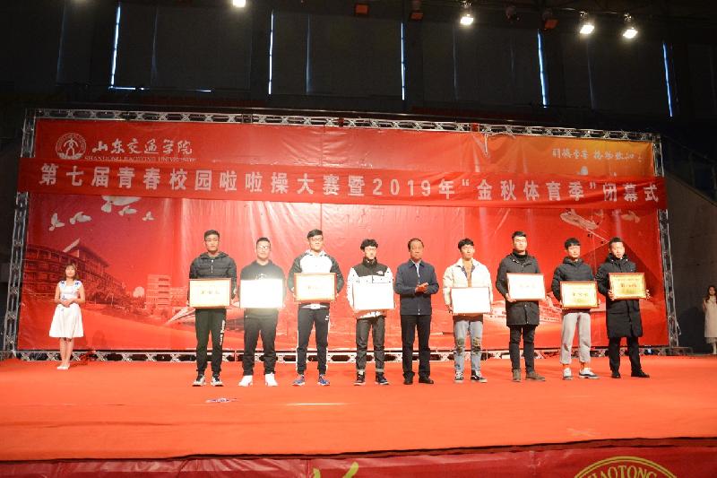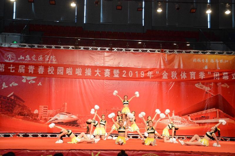 11月27日下午,第七届青春校园啦啦操大赛暨2019年“金秋体育季”闭幕式于山东交通学院长清校区文体馆顺利举行。出席本次大赛的有山东交通学院副院长孟庆旭,学生工作处处长于翊广,体育教学部主任陈晋,13个学院的书记与辅导员等以及本次担任大赛裁判员的体育教学部老师和校团委老师,主持人李成斌,袁满。