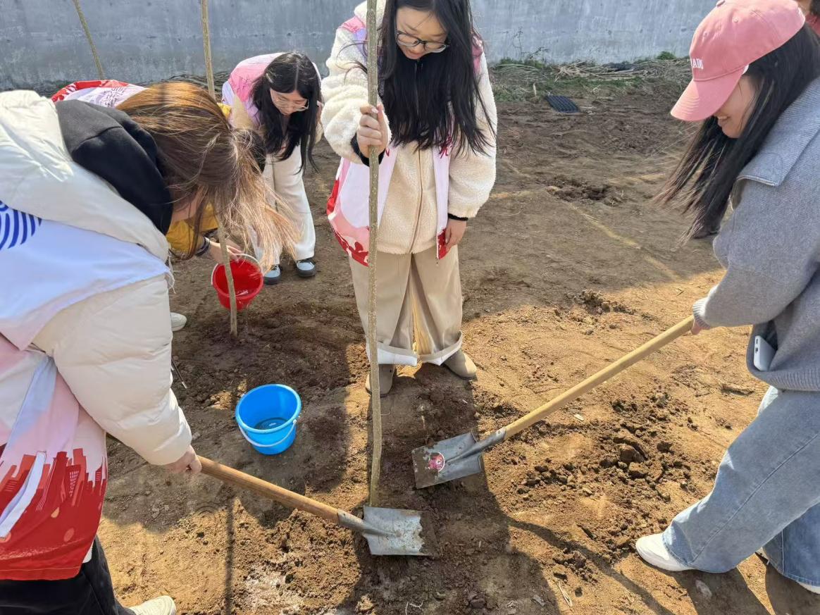 活动现场,同学们以小组为单位分工协作、默契配合,大家撸起袖子、俯下身子,以实干践初心、以汗水护青绿,亲手将一株株小白杨树苗栽入泥土,让嫩绿的新苗在春日里扎根生长。