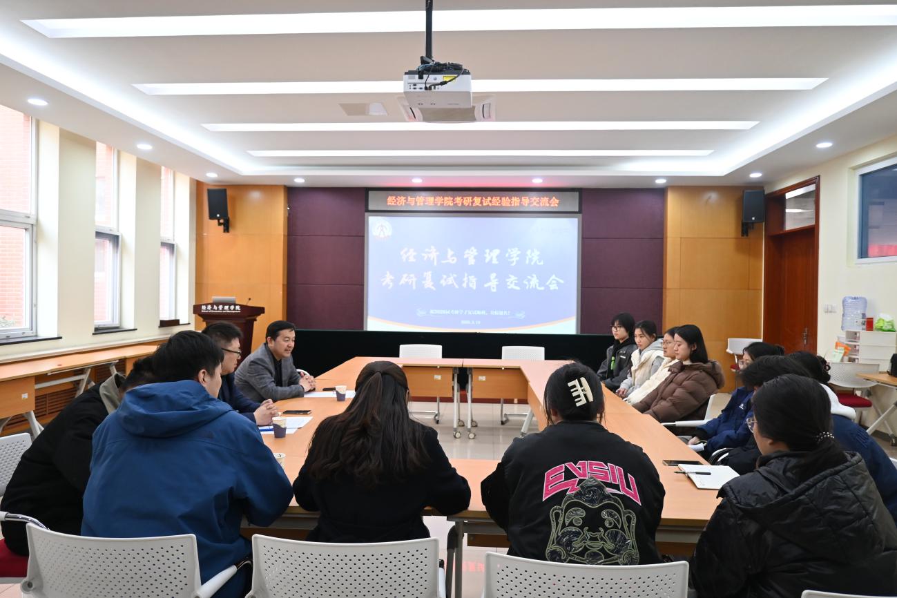 为帮助2026届考研学子科学高效备战复试、精准把控复试核心要点,经济与管理学院于3月19日下午在1B104会议室举办“研途筑梦,复试领航”考研复试指导交流会。学院院长耿中元、党委副书记许文杰及辅导员代表与2026届考研复试学子齐聚一堂,共话复试备考,展开深度交流与针对性指导。本次指导交流会以“线上+线下”结合的形式进行。