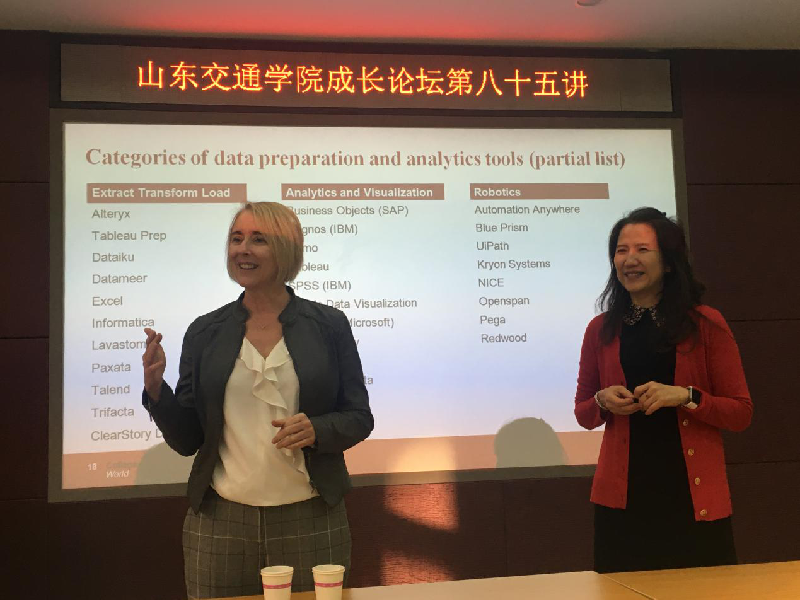 首先,两位教授为我院师生作了题为“The Evolving Future of Accounting(会计领域的发展新趋势)”的学术报告,系统分析了新兴技术,例如大数据、人工智能、区块链和机器人技术在财务管理、会计领域中的运用和未来发展趋势。
