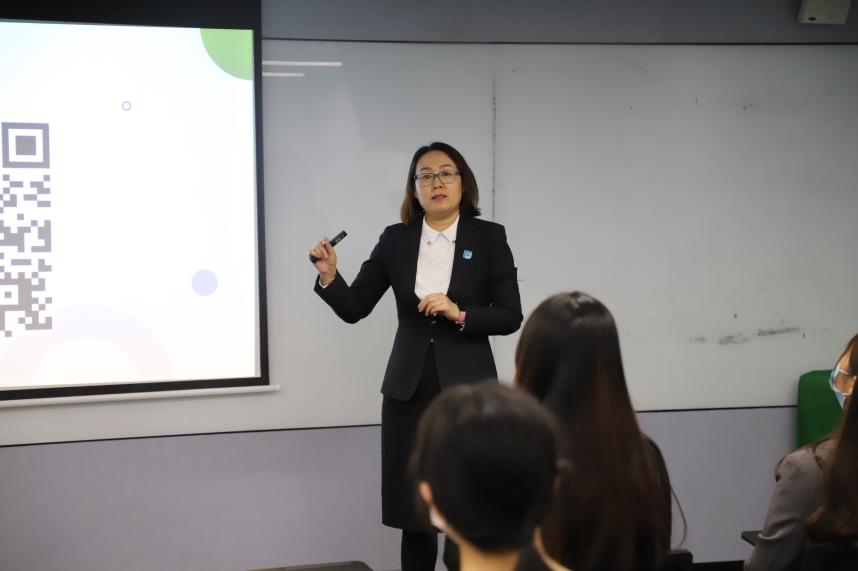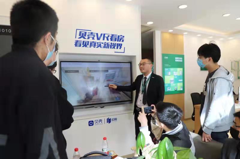 第一站前往链家中建锦绣城店,店经理详细介绍了公司一线的工作内容以及VR带看房系统,随后参观了员工工作区、客户咨询室以及培训会议室,同时店经理也对同学们提出的问题进行了耐心的解答。
