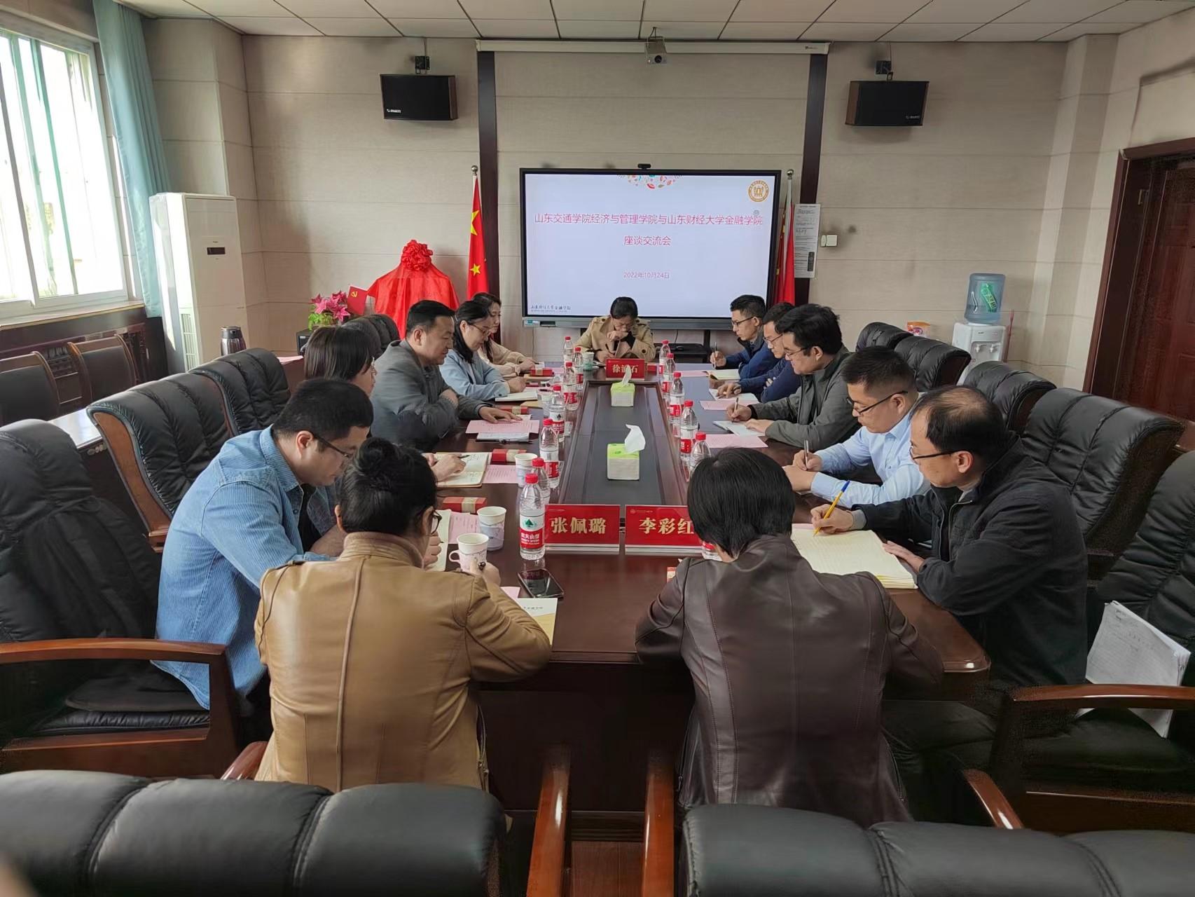 10月24日,经济与管理学院一行赴山东财经大学金融学院、会计学院进行交流调研。经济与管理学院院长耿中元,副院长孙烨、聂云霞、张蕾及各系主任,山东财经大学金融学院院长彭红枫,会计学院党委书记邵文涛、院长葛永波,智能会计与数字企业研究院院长王爱国,以及金融学院、会计学院相关专业系、部门负责人参加了此次活动。