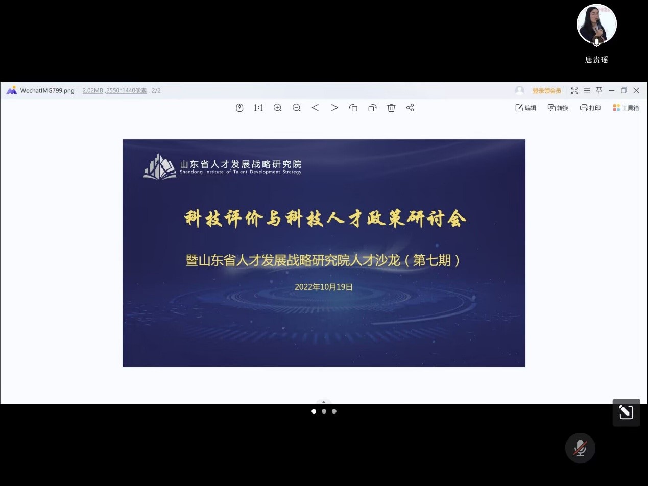 10月19日上午,山东省人才发展战略研究院举办科技评价与科技人才政策研讨会,邀请中国科学院大学公共政策与管理学院副院长刘云教授作《科技评价与科技人才政策》的线上学术报告。我院人力资源管理系教师参加了此次研讨会。