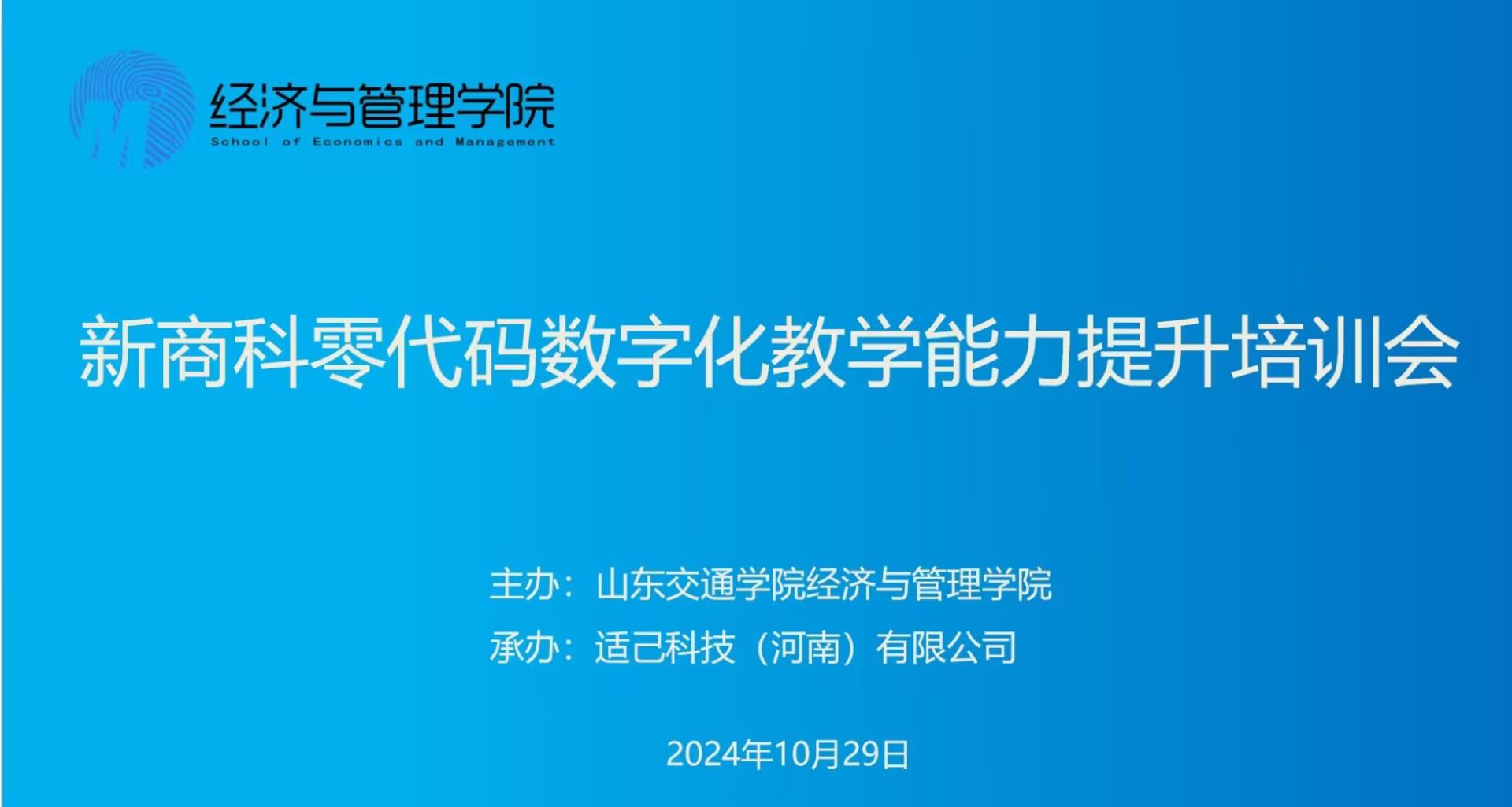 2024年10月29日晚,由经济与管理学院主办、适己科技(河南)承办的“新商科零代码数字化教学能力提升培训会”以线上方式举行,适己科技(河南)有限公司副总经理王懂受邀参加此次培训会,数字经济系骨干教师及其他各系教师代表参加了此次活动。