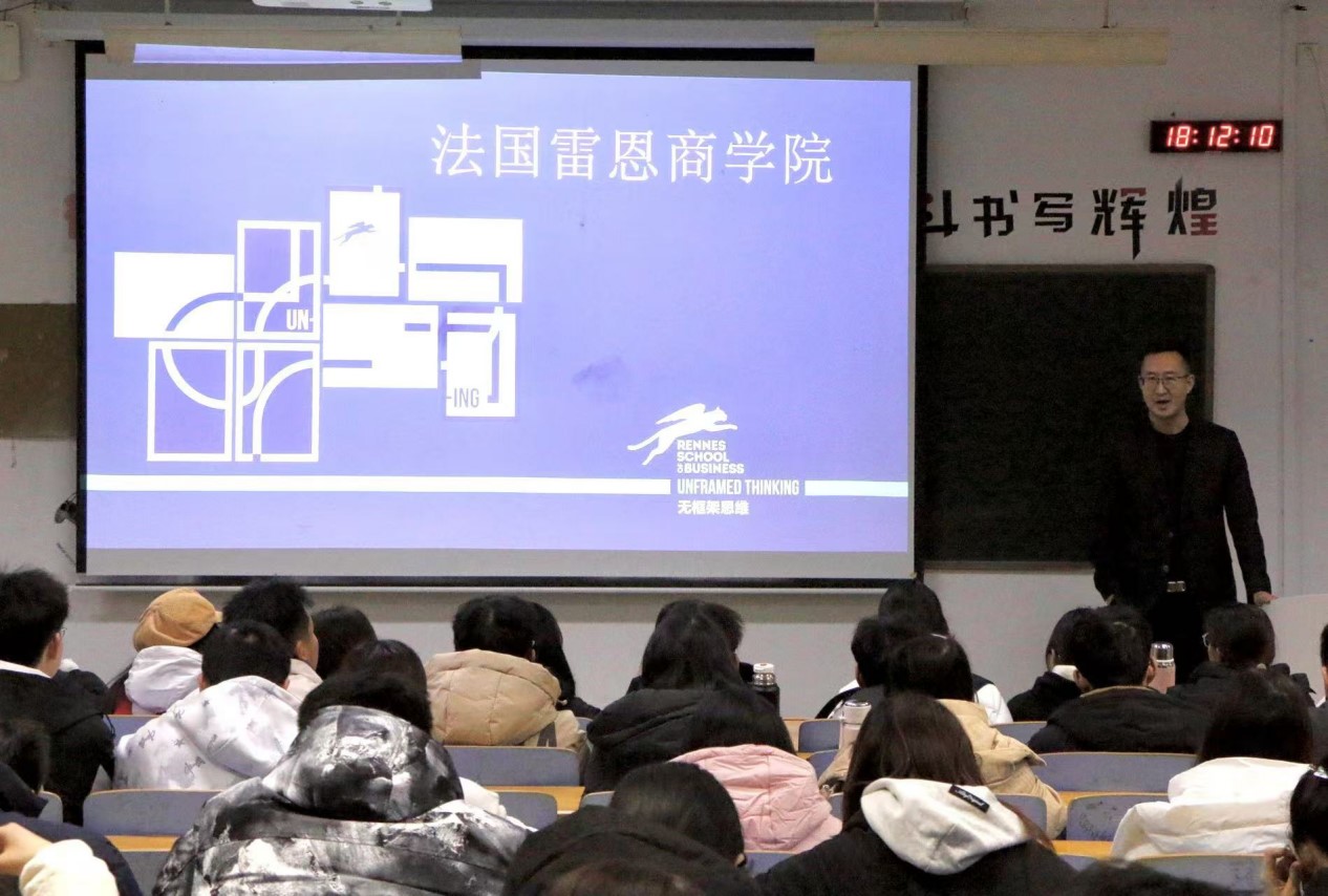 首先,通过“中法跨文化学习之旅”视频让同学们对雷恩高等商学院的基本情况有了初步了解。随后,孙忠尧从办学特色、专业设置、就业前景等方面详细介绍了雷恩高等商学院所具备的优势。最后,孙忠尧对同学们感兴趣的问题予以一一解答。