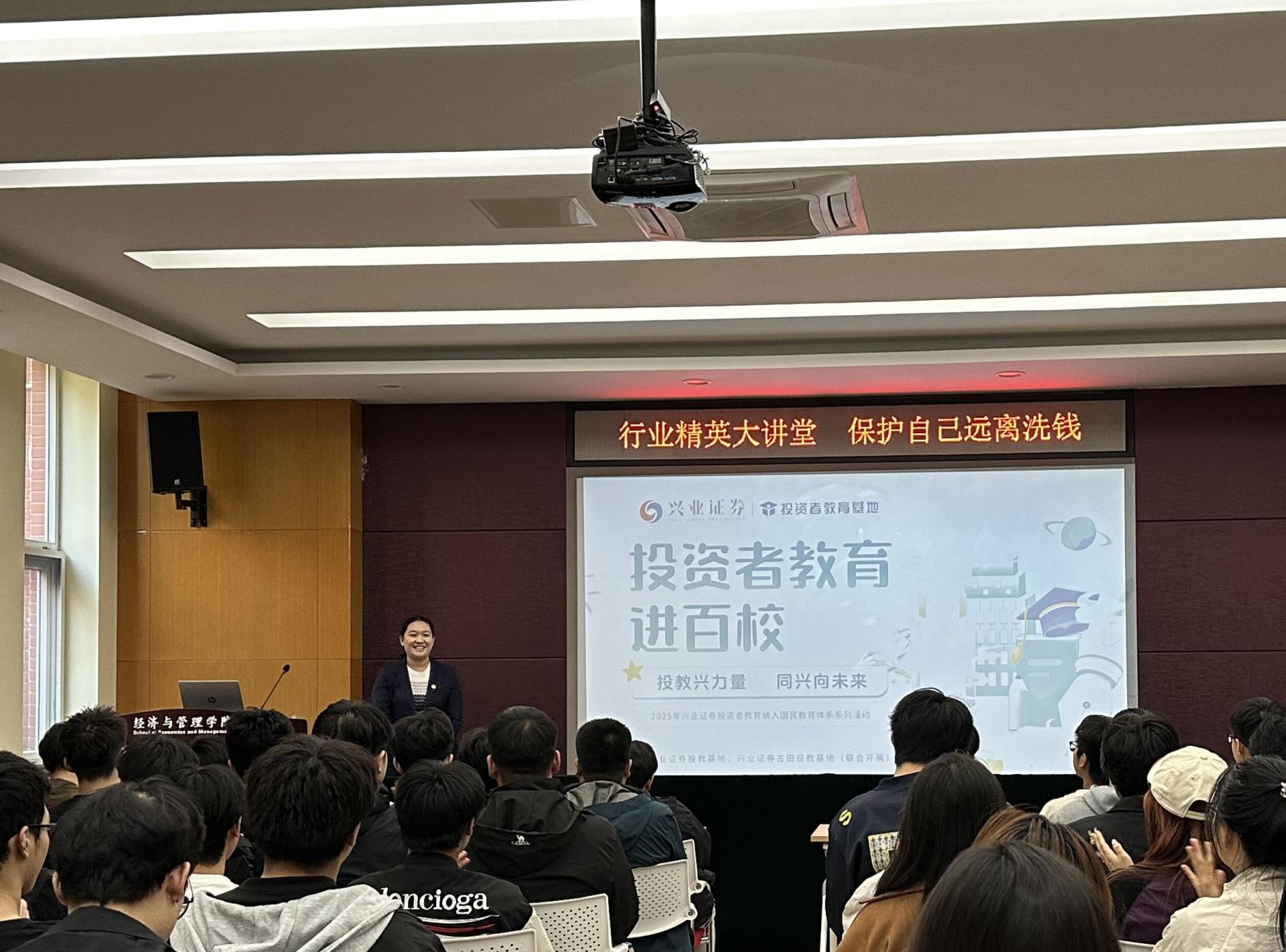 2025年4月25日,兴业证券济南泺源大街证券营业部总经理申奥和合规风控部总监董晓宁为我院师生做题为《保护自己 远离洗钱》的专题讲座,活动由数字经济系副主任陈晓红主持。
