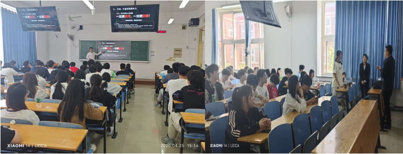 王庆亮以《向内探索 向外破局—大学生职业规划通关攻略》为题,通过问题启发、行业数据分析及案例解析,调查分析了同学们们对“职业与就业”的认知情况。结合当前就业形势与挑战,围绕职业规划的重要性、方法与步骤展开详细讲解,引导同学们结合自身兴趣、优势与职业目标,制定合理的职业发展路径。互动环节,与会同学就职业选择、实习经验、技能提升等问题与专家展开探讨。