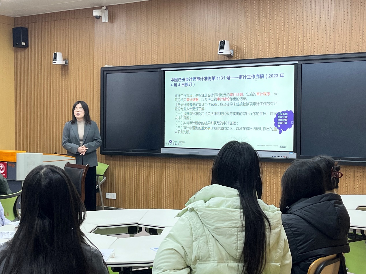 刘民以《审计实务分享》为题,详细介绍了审计工作底稿的编制逻辑与核心要素,并结合真实审计项目,深入浅出地讲解了基础审计程序在实务中的应用场景与操作要点,引导学生培养审计思维。