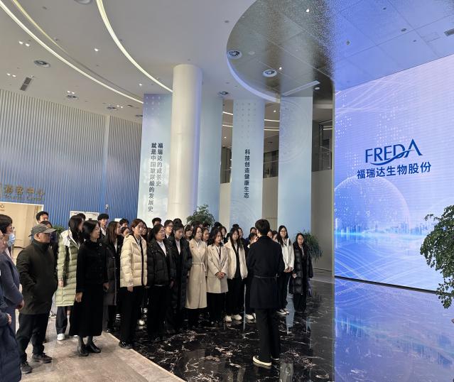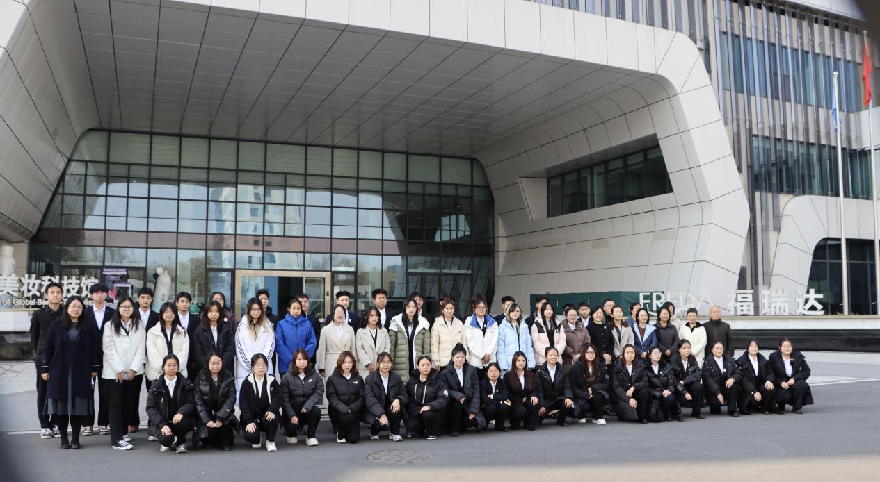 随后,师生前往山东福瑞达智美科技园,参观了福瑞达美妆科技馆及透明工厂,近距离观摩化妆品智能化生产流程,学习企业在质量管理、技术研发与产业园建设方面的实践经验,切身感受现代工业科技与工匠精神的深度融合。