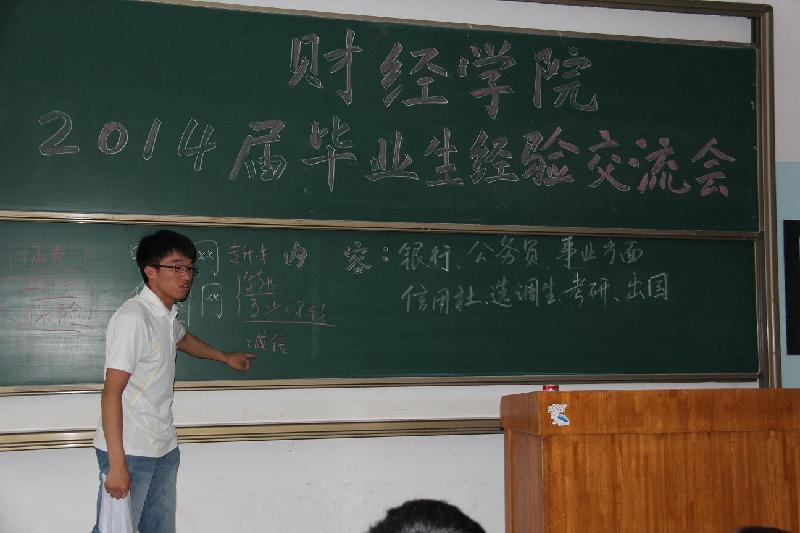 值建党93周年来临之际,财经学院组织2014届优秀毕业生党员与在校学生进行经验交流活动,本次活动目的是让一些成功就业的党员毕业生讲述一下自身的求职经验,为下一步准备求职就业的在校生们提供一些有价值的求职信息,为在校生的未来求职活动提供切实可行的参考建议。财经学院辅导员和40多名在校生代表参加了本次交流会。