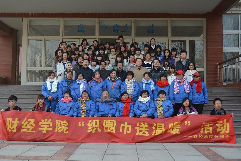 本次活动所捐献的65条围巾是从财经学院150多名女生所织围巾中挑选出的“佼佼者”。爱心围巾一针一线中都编织着财经学院全体师生对“校园美容师”的真诚关心和爱护,唤起了人与人之间的温情爱心,让这个严寒冬季不再心寒。(财经学院 文图/隋翀)