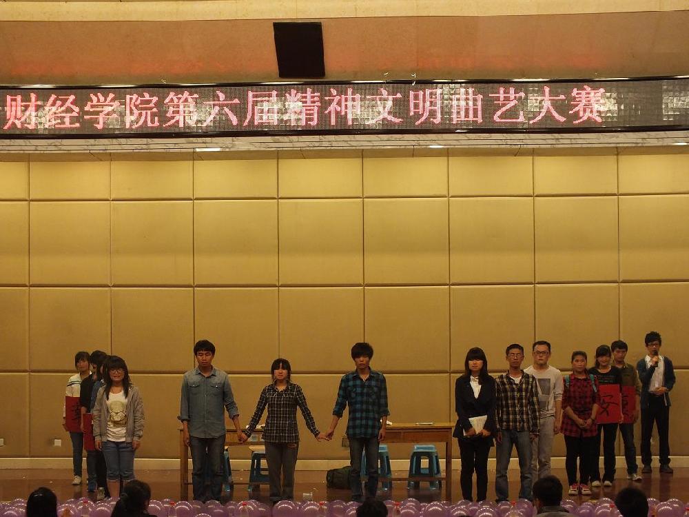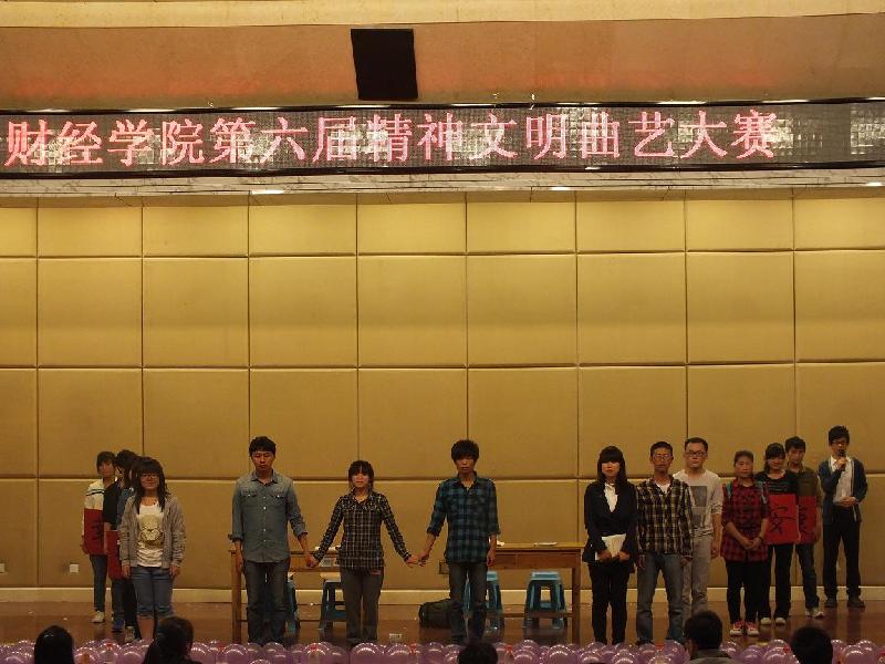 2013年5月9日,财经学院在长清学术报告厅举办第六届精神文明曲艺大赛。本届大赛以“曲艺财经,致敬青春”为主题,由财经学院分团委主办。学院相关负责人出席了开幕式。