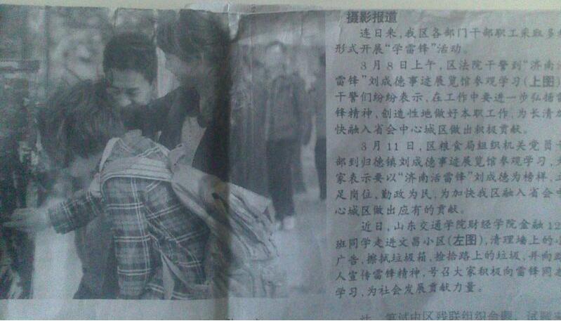 2013年3月5日,为贯彻学习雷锋精神,发扬光荣传统,山东交通学院财经学院金融122班全体同学积极响应学校号召,走到长清的文昌小区,用自己的一份力量去学习雷锋,做好事。