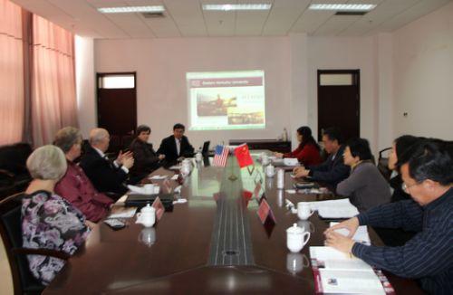 11月26日,美国东肯塔基大学商务与技术学院院长罗伯特•罗高博士,应用工程与技术系航空项目主任拉尔夫•盖博,会计、金融与信息管理系教授林昌洋博士等一行五人到我校访问。这是继9月份我校代表团访问该校后,美方大学对我校的回访。