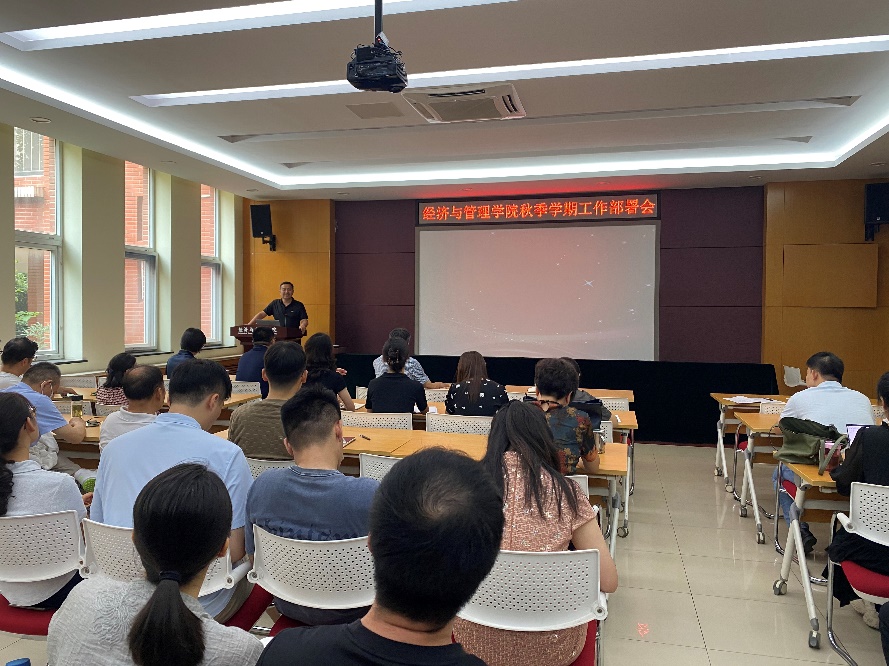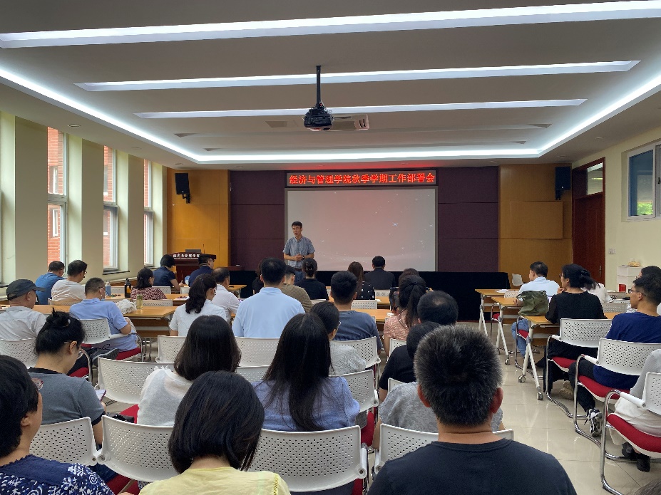 8月27日下午,经济与管理学院在1B104召开2025年秋季学期工作部署会议,学校党委委员、副院长张萌萌出席会议。会议由学院党委书记赵晖主持。