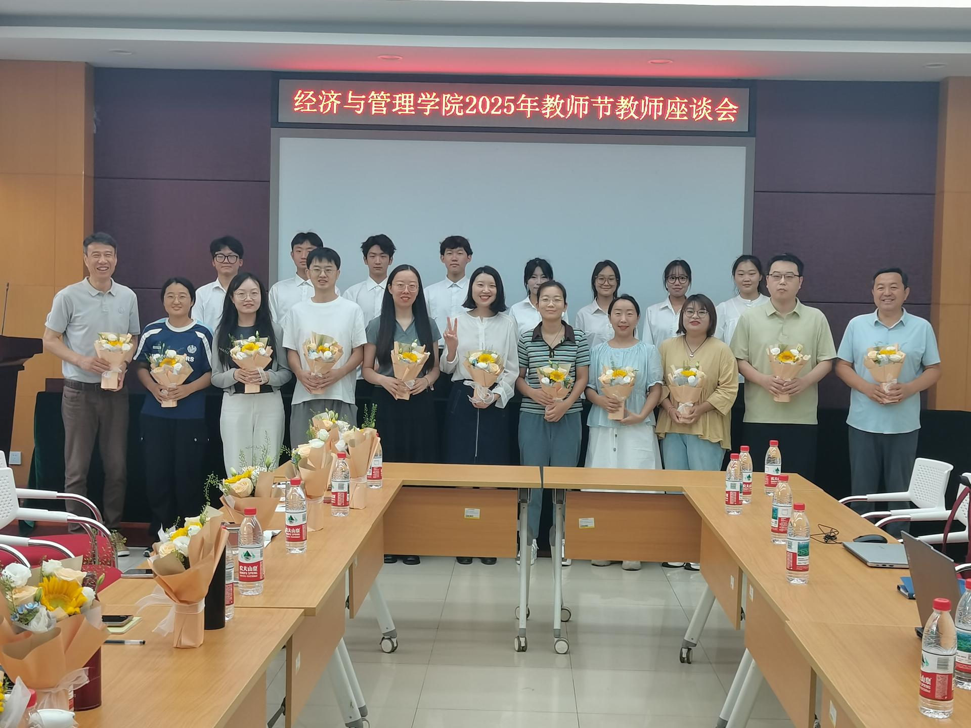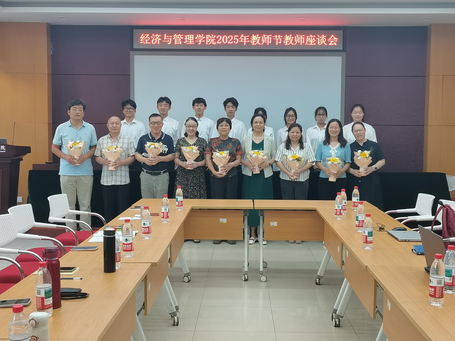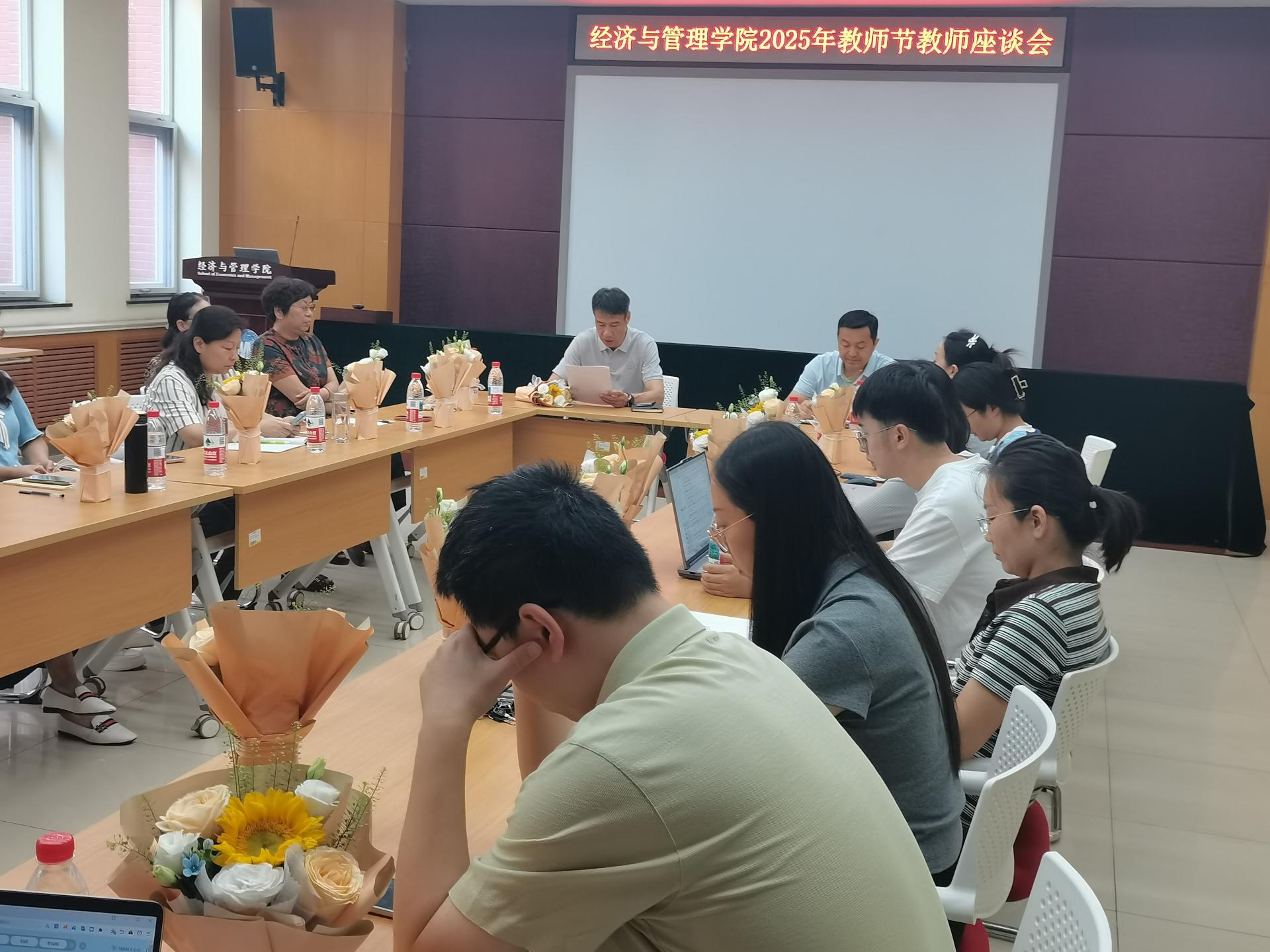 为庆祝第41个教师节,9月10日上午,经济与管理学院在长清校区一号教学楼1B104举行“传承弘扬教育家精神,服务教育强国建设”教师座谈会。会议由学院党委书记赵晖主持。