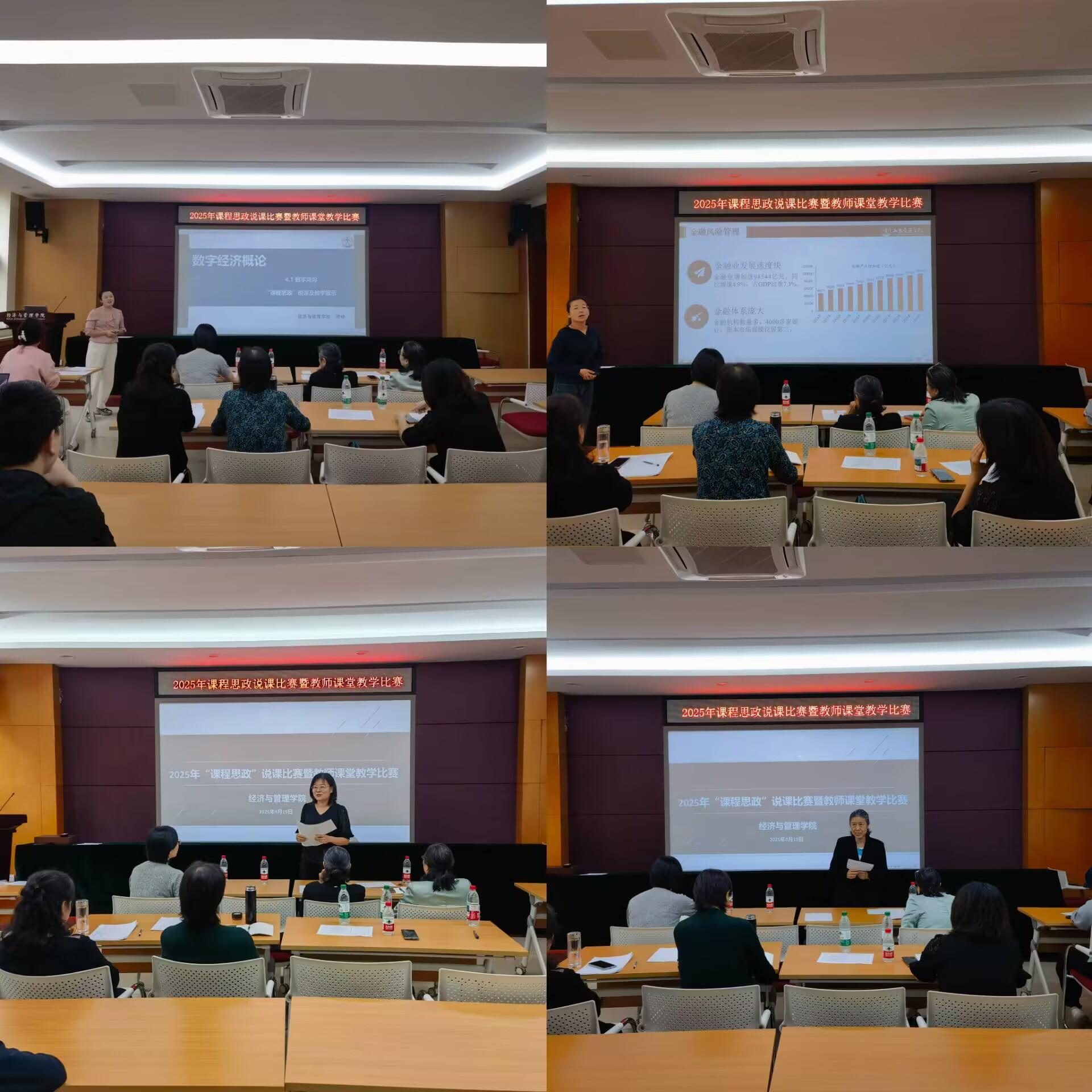 2025年9月19日上午,经济与管理学院课程思政暨教学新形态研究中心在1B104会议室举办2025年“课程思政”说课比赛暨教师课堂教学比赛,李玥等7位青年教师参加比赛活动。比赛由副院长聂云霞主持,学校督导曾梅、学院督导组成员担任评委,学院部分青年教师代表观摩了比赛。