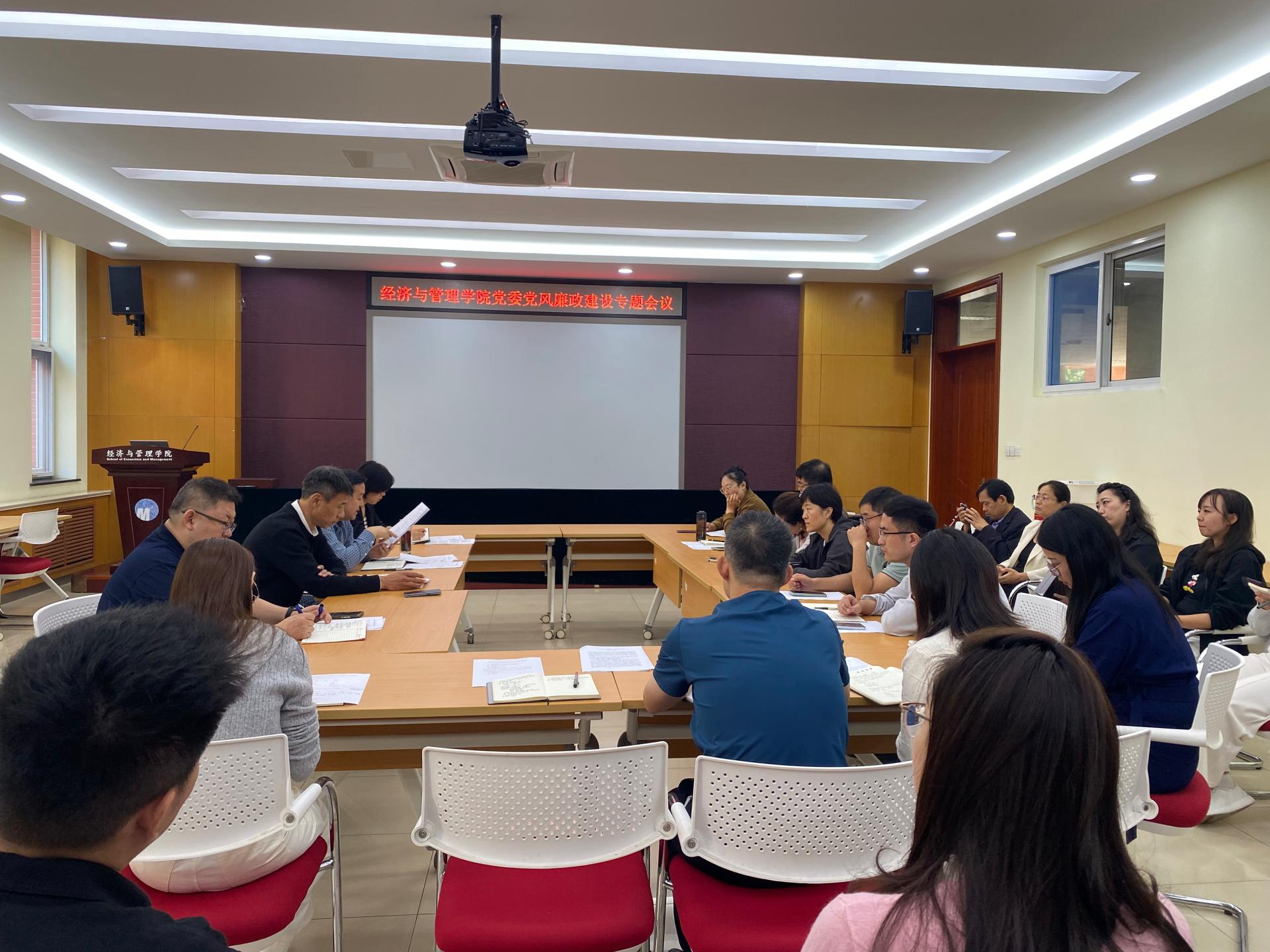 9月29日上午,经济与管理学院党委在长清校区1号教学楼B104召开党风廉政建设专题会。会议由赵晖主持。