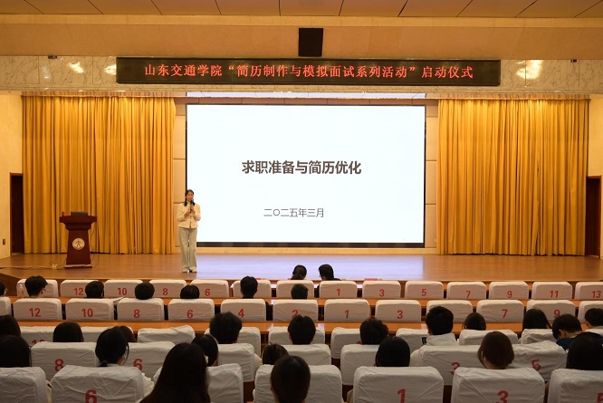 为帮助学生更好地适应日新月异的就业形势,提高求职竞争力,山东交通学院于3月13日晚举办了“破‘简’而出,职‘面’未来”简历制作与模拟面试系列活动的启动仪式。本次活动由山东交通学院招生就业处、校团委主办,经济与管理学院承办。学校招生就业处副处长田家军、校团委副书记杨丽娜出席启动仪式,经济与管理学院党委副书记王莉主持。