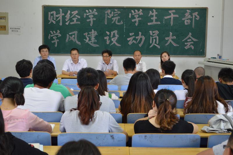 为进一步推动我院学风建设,营造良好学习氛围,我院于5月21日下午在1号教学楼A402召开了学生干部学风建设动员大会。财经学院分党委书记甘永生、副书记刘勇波、各年级辅导员老师和全体学生干部参加了会议。