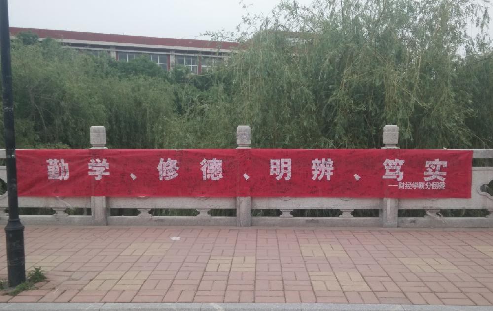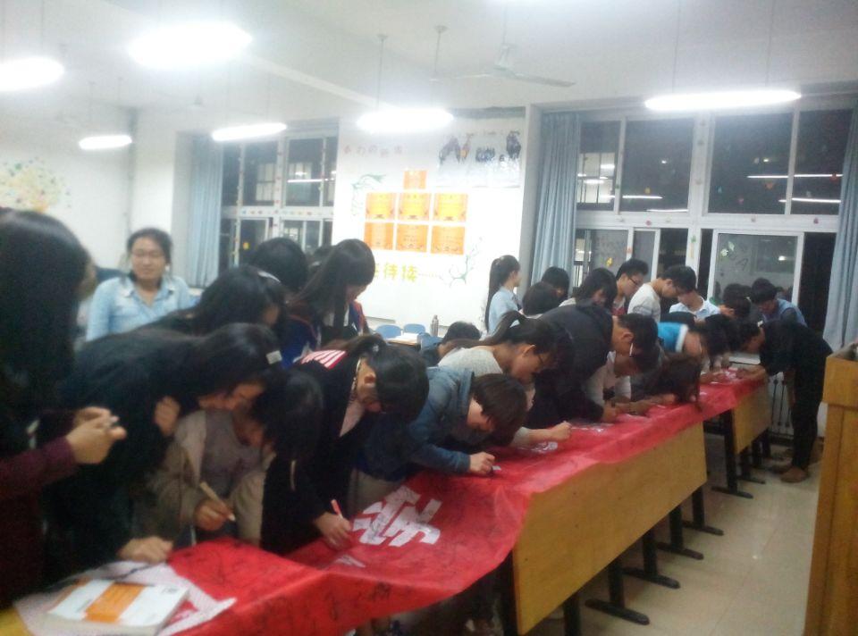 为进一步宣扬五四精神,认知、践行习近平主席提出的“勤学、修德、明辨、笃实”八字真经,财经学院于5月5日中午和5月6日晚上开展了“致青春,中国梦”五四系列活动之“横幅签字仪式”。活动以宣扬“八字真经”为主题,引导广大青年做社会主义核心价值观的自觉践行者为目的来进行。同学们积极响应,名字签满了整条横幅。