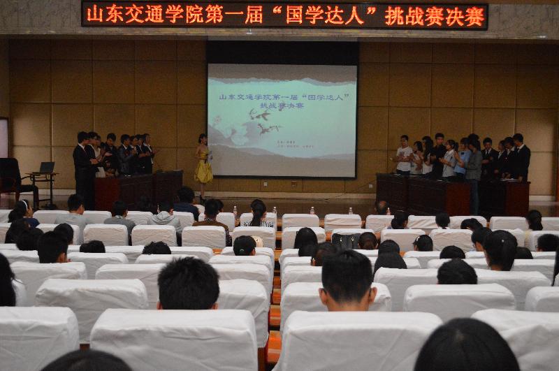 5月14日下午,由校团委主办,财经学院分团委和校国学社承办的山东交通学院首届“国学达人”挑战赛决赛在我校长清校区报告厅落下帷幕,财经学院分党委书记甘永生、校团委副书记周颜玲、各学院辅导员和五百多名观众共同参加了本次活动。