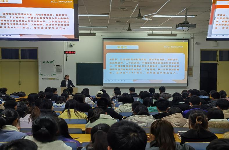 2021年11月24日于1AB201教室开展了学生职业生涯规划讲座。此次活动主讲人为鲁南制药集团招聘总监宋祥云,21级部分班级参与本次讲座。