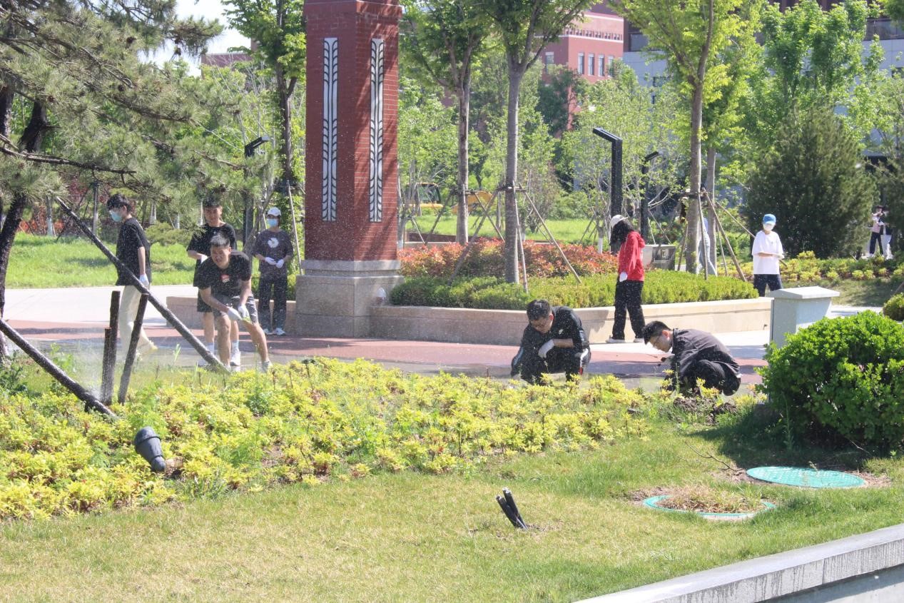同学们于新南门五棵松树下集合,进行明德广场除杂草、浇水活动,学校领导与同学们一起参与到此次活动中。面对杂草丛生的校园绿化地,大家干劲十足,领导带领同学们埋头苦干,熟练地将一颗颗草连根拔起,分工明确、团结协作,明德大道到处都是同学们的身影,不乏有同学微微起身,擦擦额角的汗珠。经过两个小时的奋战,除草区域里“肆意狂长”的杂草被一一清除,留下干净整洁的新绿景象。