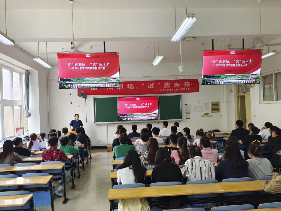 5月31日下午,经济与管理学院在长清校区1B104会议室举行“‘面’向职场 ‘试’应未来”模拟面试比赛。学院党委副书记王莉出席比赛活动。