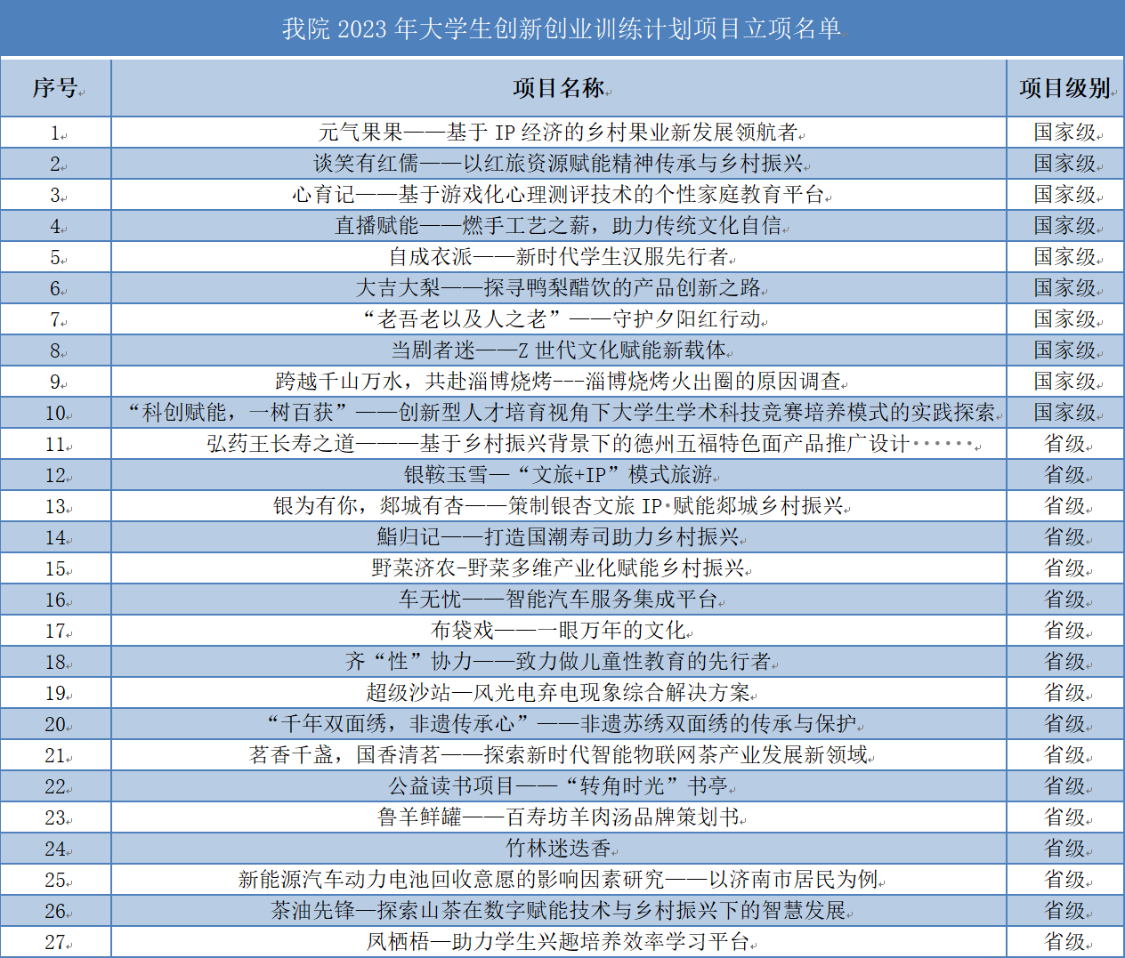 近日,2023年大学生创新创业训练计划项目立项结果公布。我院《元气果果——基于IP经济的乡村果业新发展领航者》《谈笑有红儒——以红旅资源赋能精神传承与乡村振兴》等10个项目获国家级立项,《“千年双面绣,非遗传承心”——非遗苏绣双面绣的传承与保护》《公益读书项目——“转角时光”书亭》等17个项目获省级立项。