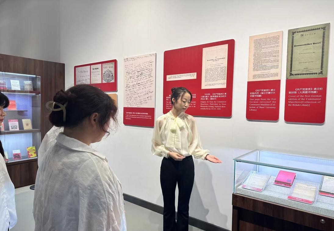 为了使新生们深入了解党的伟大事迹,加强党史学习,发扬党的优良传统,以坚定理想信念筑牢信仰之基,9月27日我院组织新生代表参观共产党宣言主题展览馆。