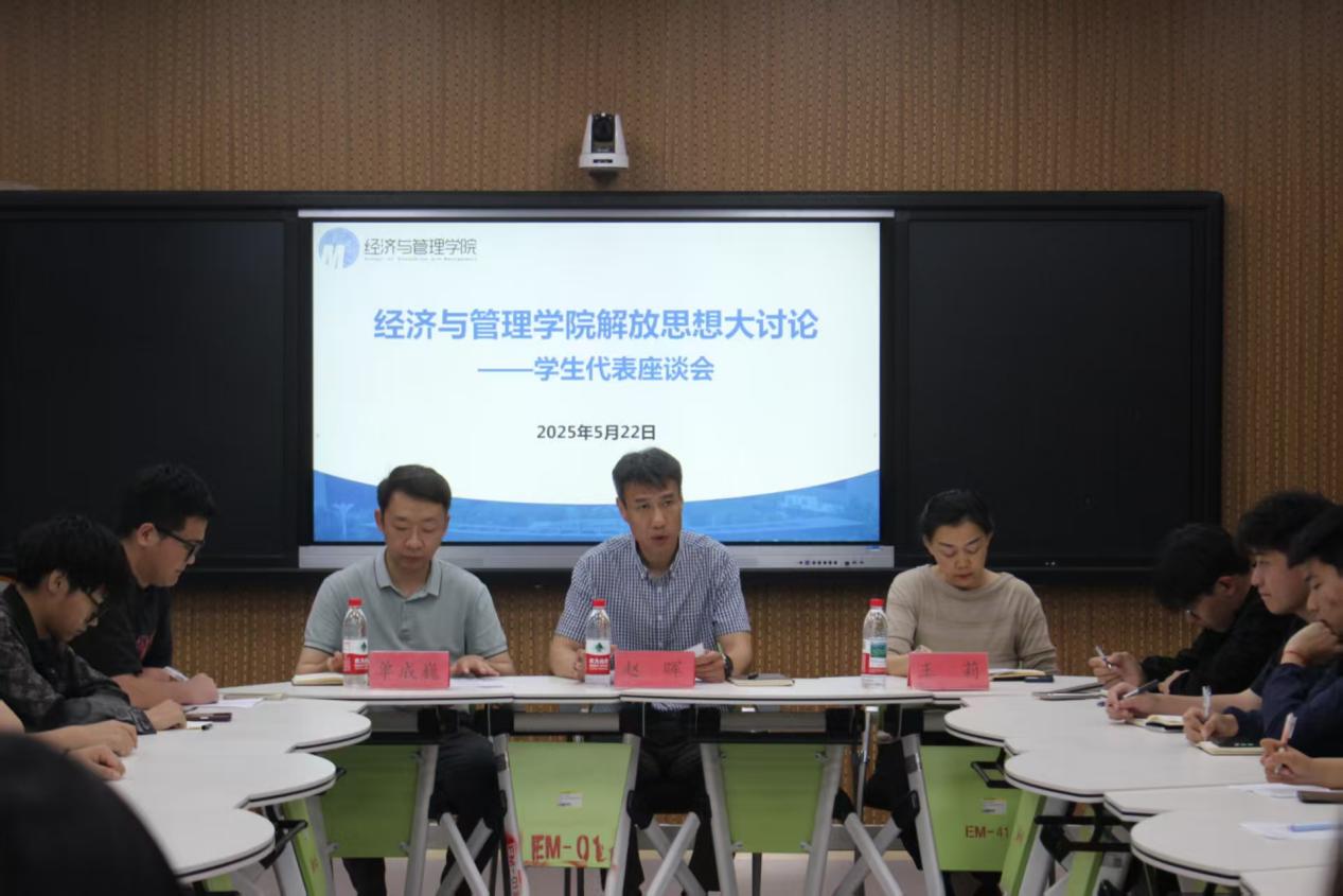 为进一步了解学生需求,畅通沟通渠道,助力学生成长成才,经济与管理学院于5月22日在1A203教室召开学生代表座谈会。会议由学院党委书记赵晖主持。