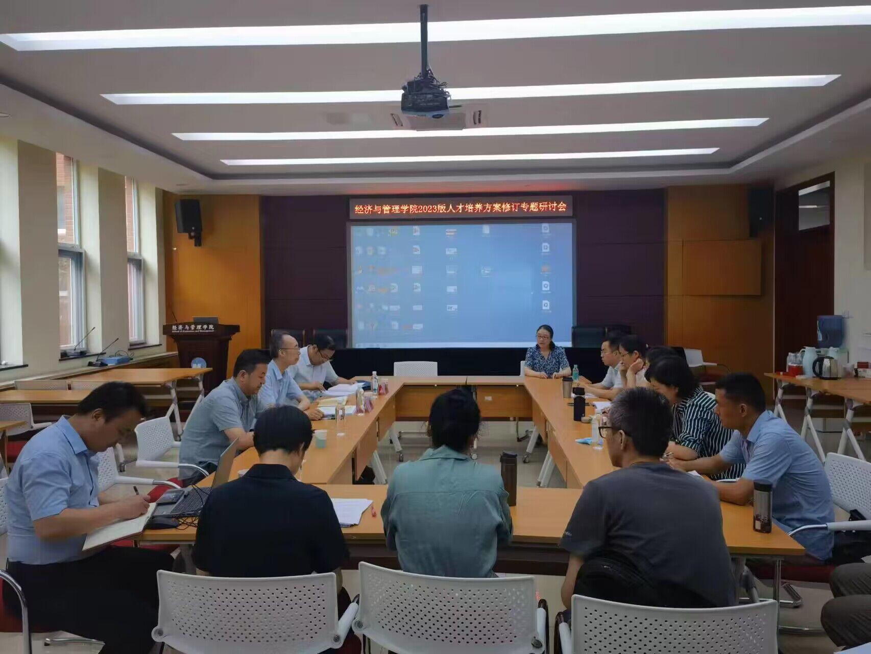 6月29日,经济与管理学院在一号教学楼1B104会议室召开2023版人才培养方案修订专题研讨会。教务处处长汪明栋,副处长曾庆凯,学院院长耿中元,副院长孙烨,校、院督导专家,公共课开设学院相关专家,各系主任、副主任及部分骨干教师参加会议。会议由汪明栋主持。