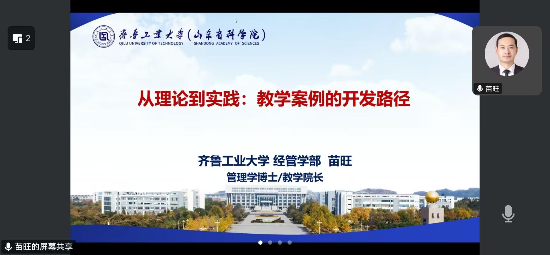 3月25日晚,经济与管理学院邀请齐鲁工业大学经管学部教学院长苗旺开展教学案例开发线上专题讲座。学院院长耿中元、教学案例撰写团队成员、各系教师参加了讲座。讲座由学院副院长孙烨主持。