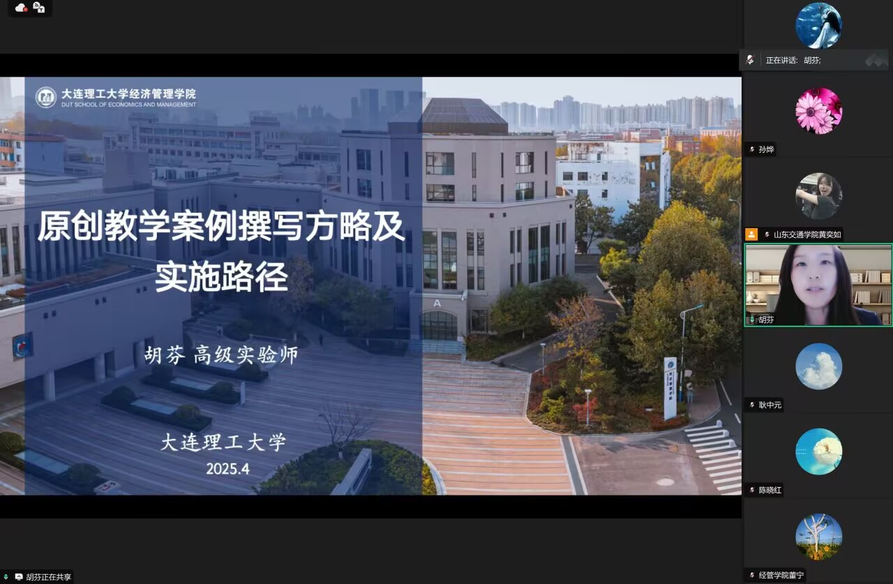 4月7日晚,经济与管理学院邀请大连理工大学经济管理学院案例中心高级实验师胡芬作题为《原创教学案例撰写方略及实施路径》的线上讲座。学院院长耿中元、教学案例撰写团队成员、各系骨干教师参加。讲座由学院副院长孙烨主持。