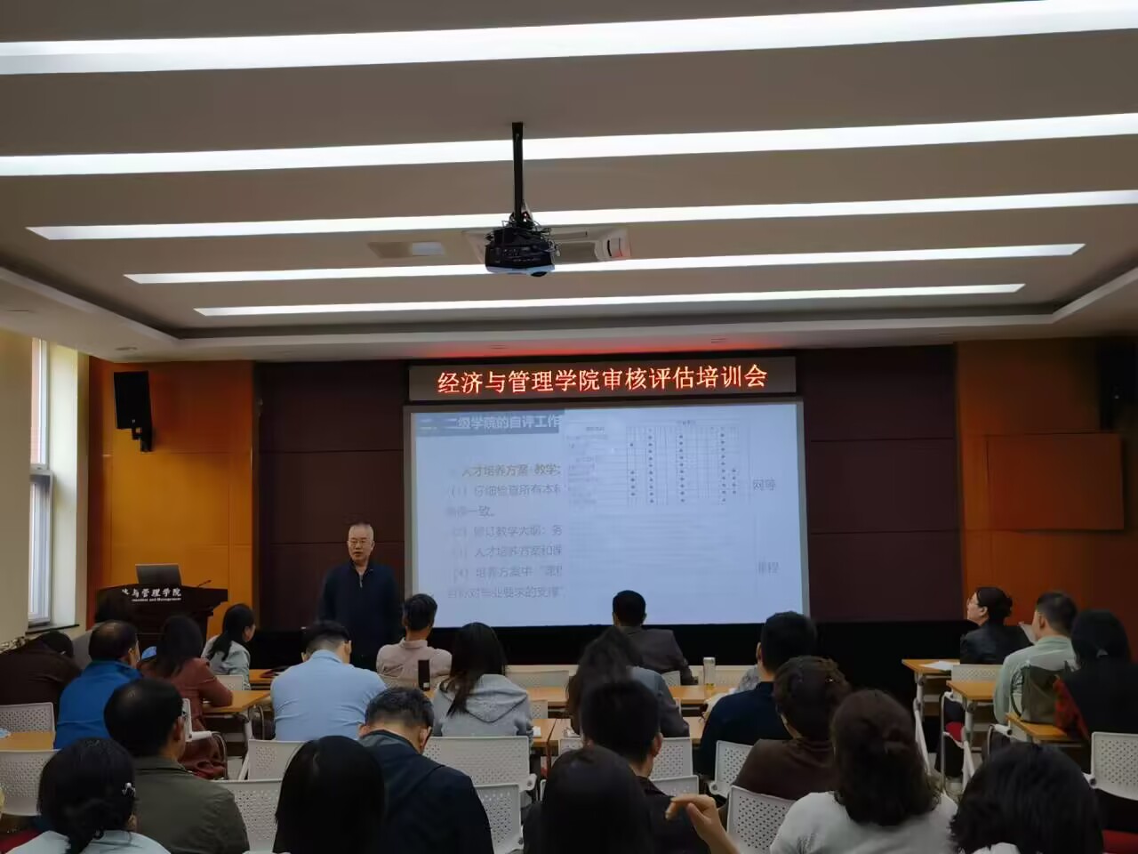 4月23日,经济与管理学院召开本科教育教学审核评估培训会。校院两级督导联合工作小组组长李景芝教授莅临指导,学院副院长孙烨主持会议。