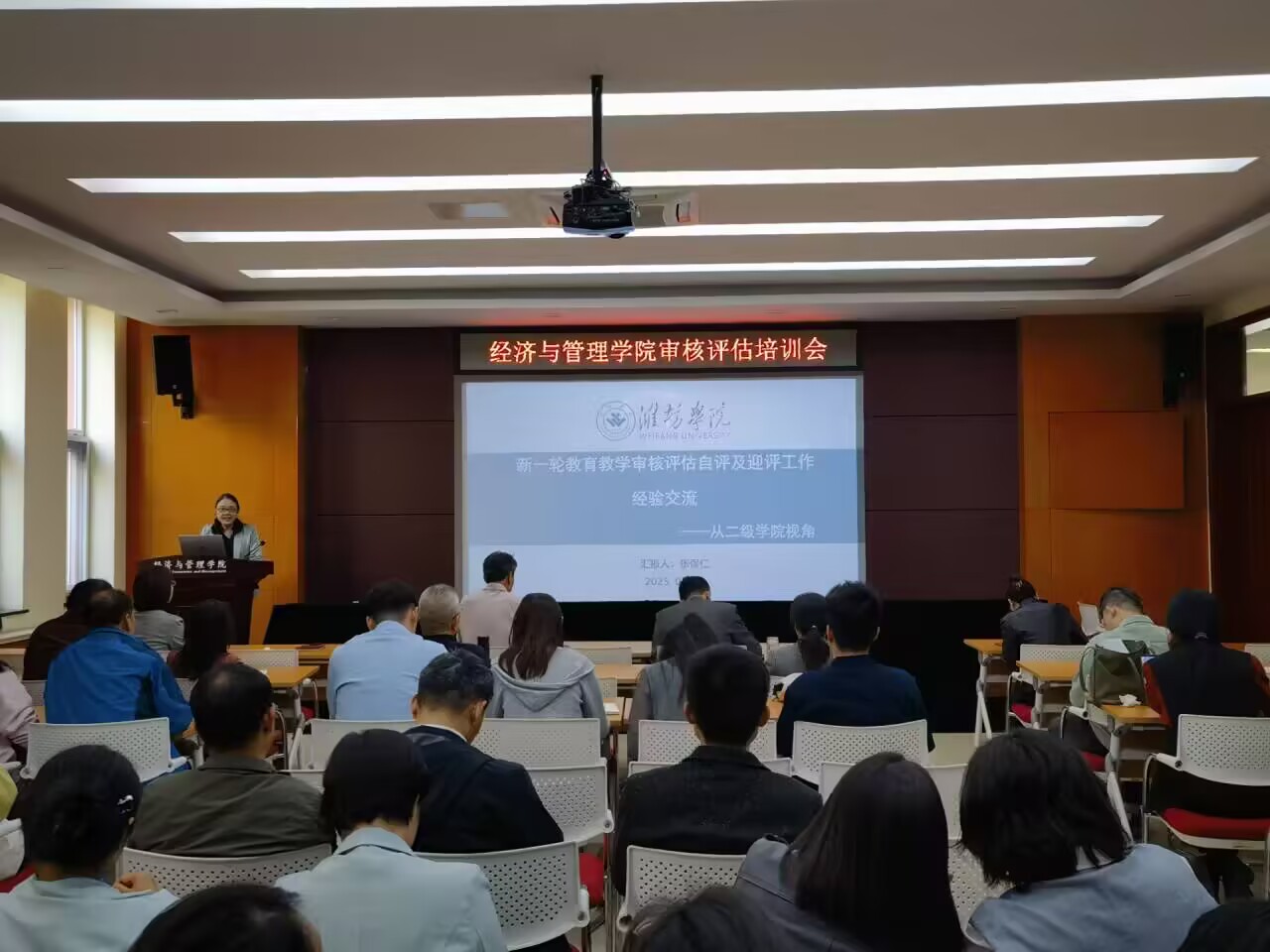 孙烨传达了潍坊学院现代农学院副院长张保仁教授的审核评估经验交流报告内容,结合学院自身情况,从审核评估的主要环节、二级学院的自评工作、二级学院的迎评工作等三个方面进行了系统培训,并部署了学院近期围绕审核评估即将开展的“五说”(说学院、说专业、说课程、说课堂、说学生)工作和教学档案检查工作。