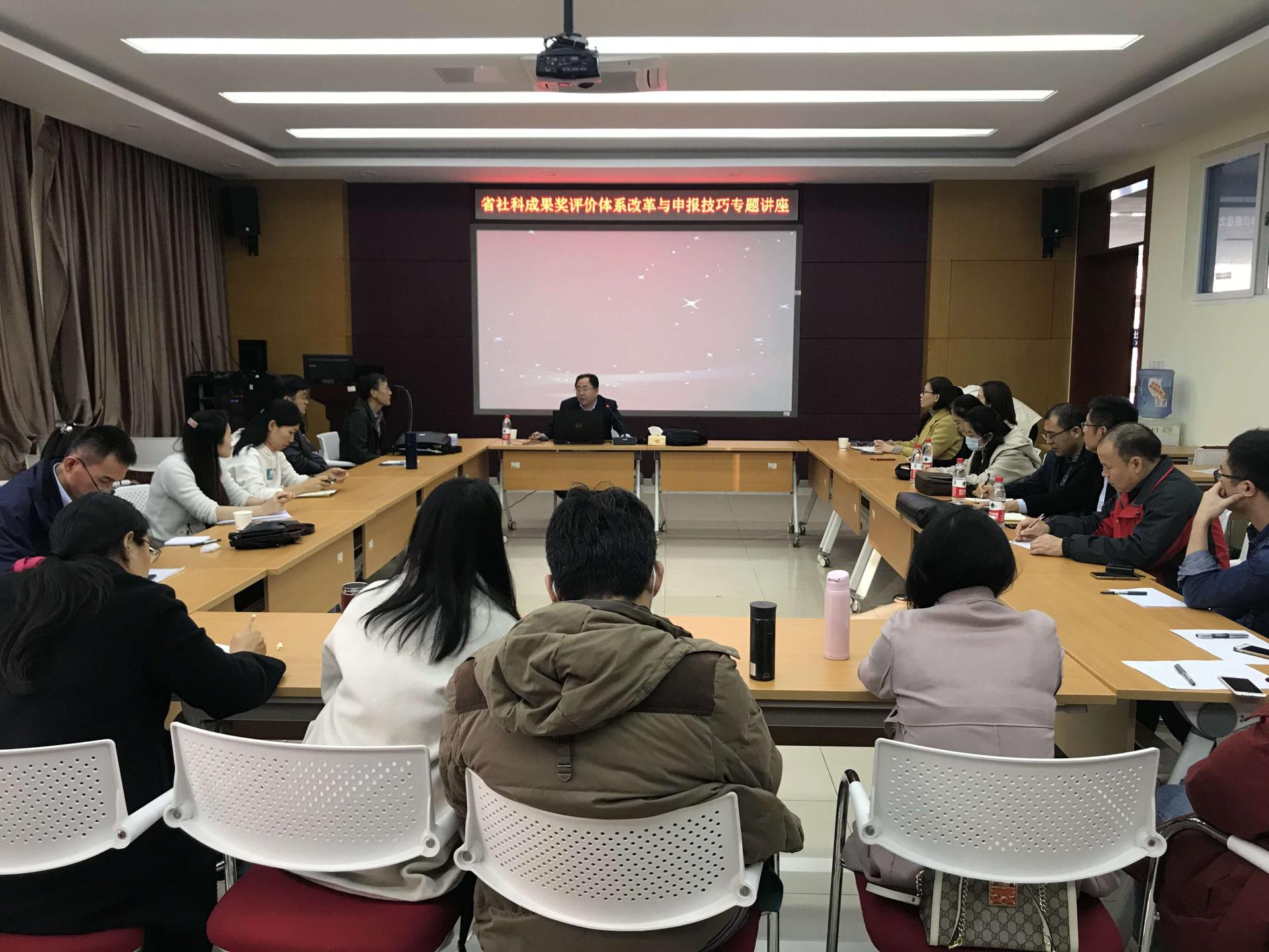 2020年11月19日,原山东省社科联主席周忠高教授应邀为山东交通学院作《省社科成果奖评价体系改革与申报技巧专题讲座》,科研处处长、经济与管理学院院长来逢波主持讲座,来自经济与管理学院、外国语学院、马克思主义学院和交通与物流工程学院等的社科骨干力量参加了本次讲座。