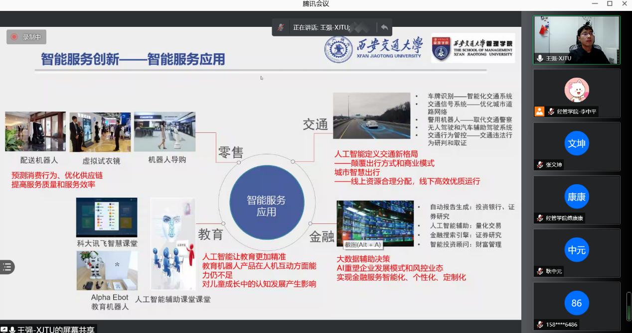 报告中,王强分别从技术的发展与进步、重塑服务与消费、顾客接受度、员工和劳动力市场、伦理道德与安全五个主题出发,梳理现有研究成果和脉络,并探讨现有研究的不足和未来研究的机会。报告内容生动深刻,既有理论上的前沿性和指导性,更有实践上的操作性,赢得了老师们的一致好评。报告互动环节,王强和参会老师进行了充分交流,针对大家提出的数智时代的服务创新问题,给出了详细解答和建议,为老师们科研提供了崭新视角。