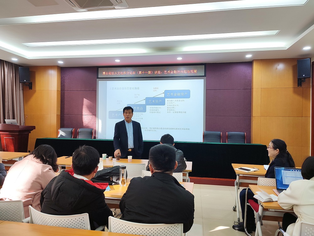 11月30日,由科研处主办、经济与管理学院承办的第十一期博士论坛人文社科分论坛专题讲座在1B104顺利举办,山东财经大学产业发展研究院院长张志元教授作了题为《艺术金融的兴起与发展》的学术报告,学院50余名师生参加了此次活动。
