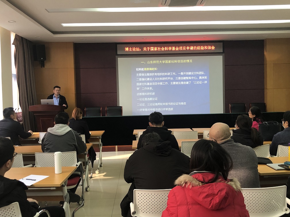 12月15日,由科研处主办、经济与管理学院承办的第十八期“两金”项目专家指导会在1B104顺利举办,山东师范大学博士生导师马宗国教授作了题为《关于国家社会科学基金项目申请的经验与体会》的学术报告,30余名有申报意向的教师参加了此次活动。