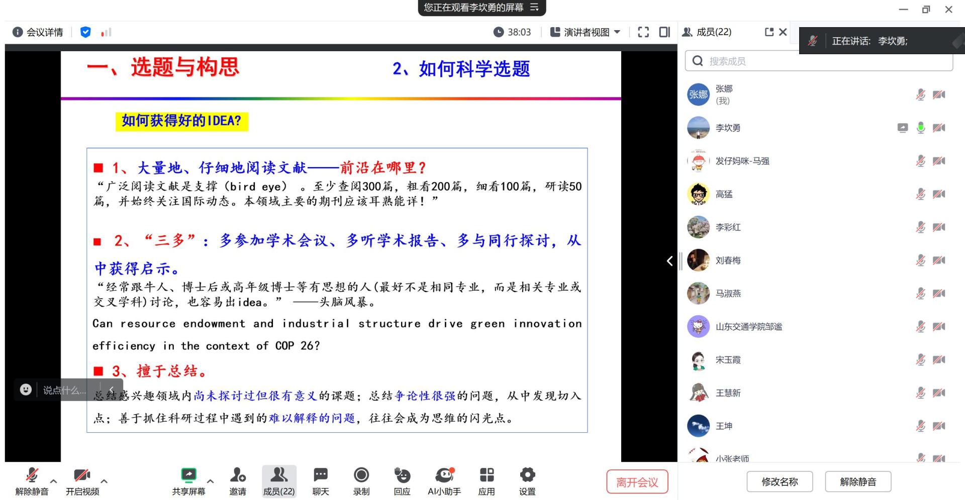 8月4日,经济与管理学院举行线上英文学术论文撰写与发表经验分享会。学院教师李坎勇博士和邹谧博士受邀分享学术论文写作经验,学院20余位科研骨干教师参加会议,会议由副院长张蕾主持。