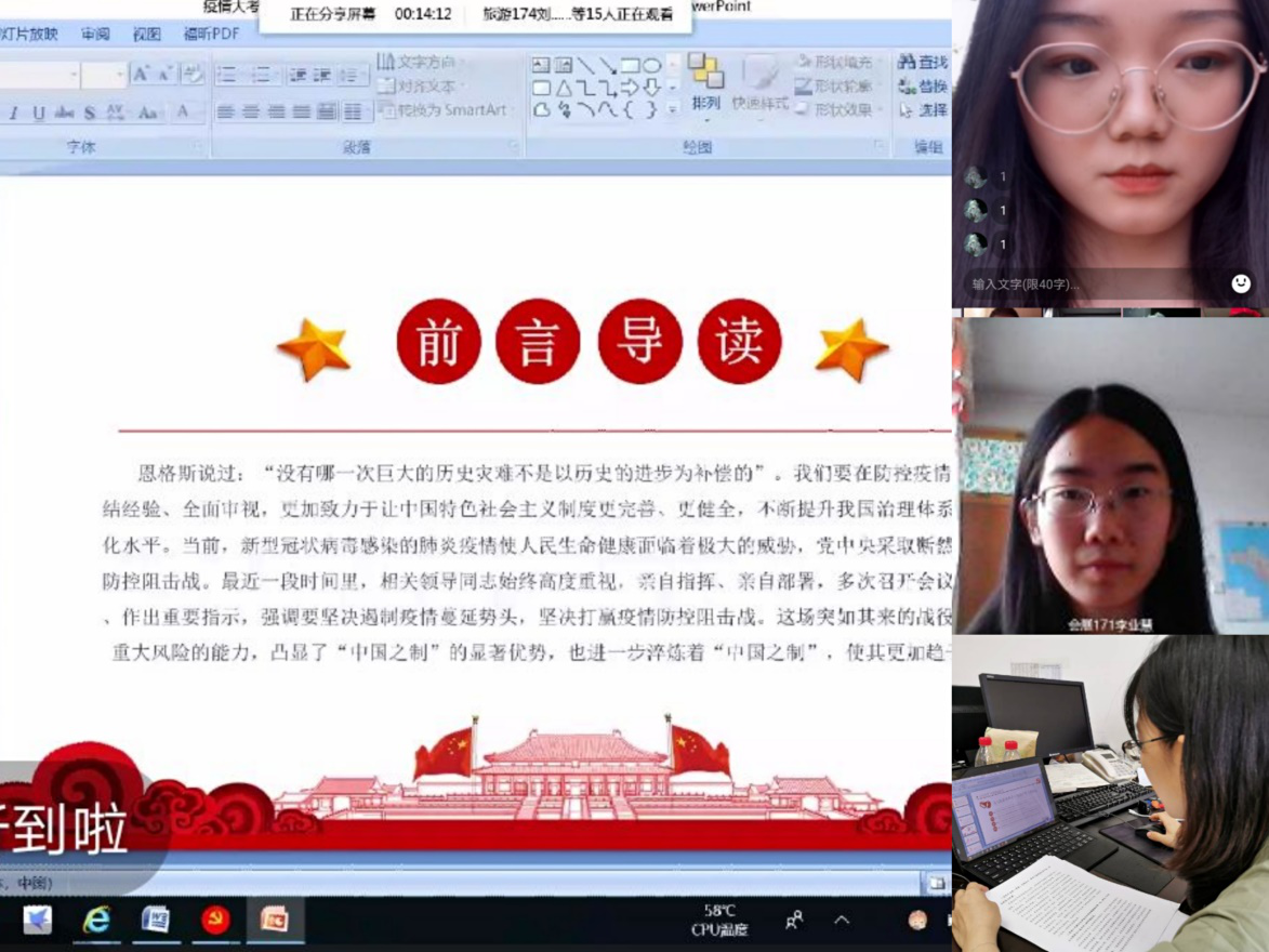 会议开始,四支部党员们共同表示了对中国共产党成立99周年的热烈祝贺,接着支部书记于阳同志提出本次活动将围绕党的光辉历史与伟大抗疫精神进行学习交流。活动中,支部书记于阳同志结合丰富的历史大事件讲述了党领导人民进行的艰苦卓绝的斗争历程、党的光荣传统、宝贵经验和伟大成就;并结合疫情讲述了中国特色社会主义制度在中国共产党的带领下的优越性,例举了疫情爆发时,党中央采取的一系列断然的措施打响疫情防控阻击战。在深入学习和领悟中,四支部党员们更加坚定红色基因存在于党的光辉历史中,重温党史就是重新体悟共产党人的初心和使命。会议最后,支部书记于阳同志对大家的发言进行了总结,激励大家积极融入党组织,丰富党日活动形式,展现新担当新作为,努力当先锋做表率,传递抗击疫情正能量,为基层党组织这座堡垒上的鲜艳红旗增添一抹更为亮丽的“红”色。